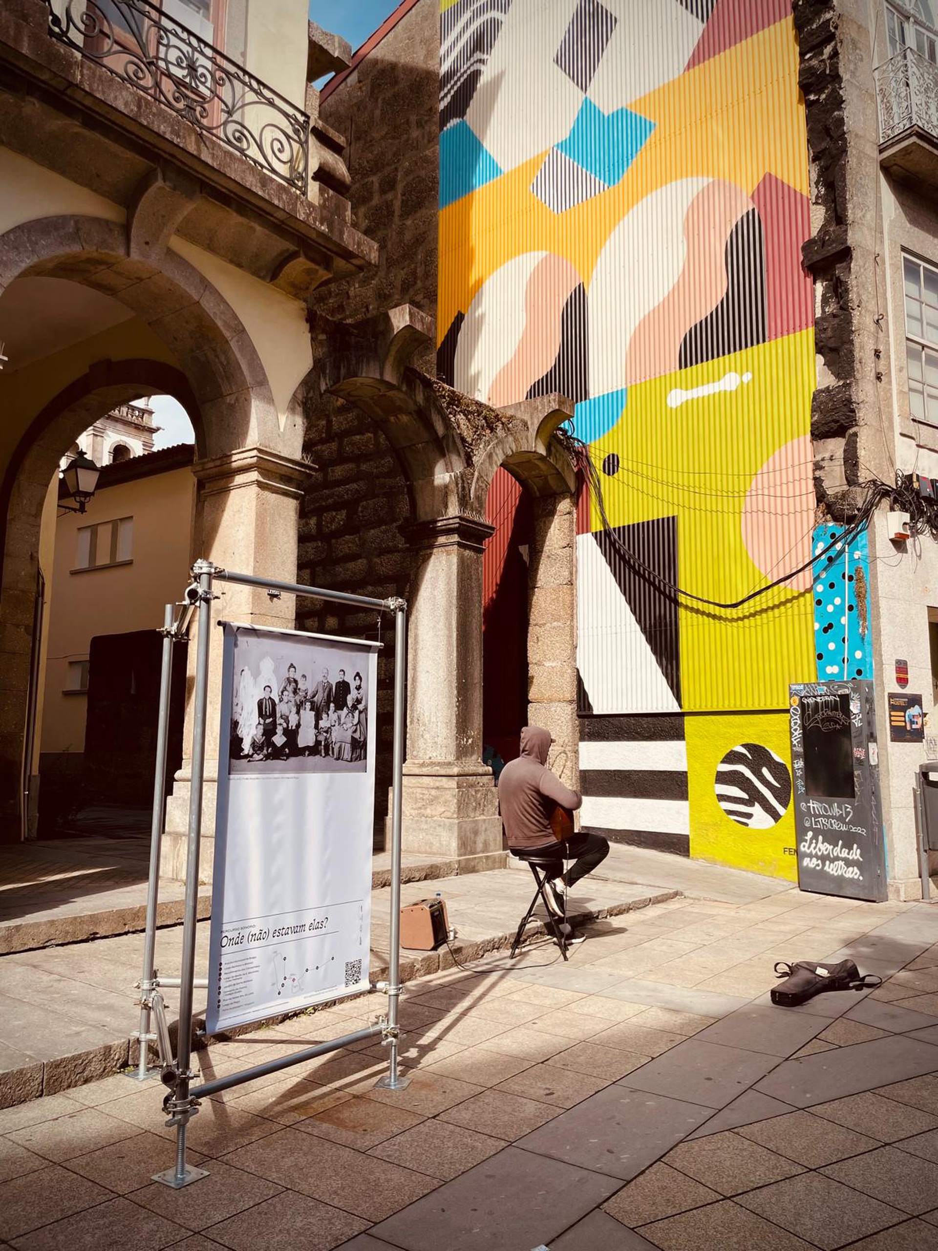 Neste percurso sonoro criado a partir de fotografias históricas, olhamos para a presença e ausência do feminino na história da cidade. Com passagem por vários pontos simbólicos de Braga, este percurso expositivo junta fotografias do Arquivo Municipal a um conjunto de registos sonoros, desenvolvidos com um grupo sénior do Centro Social de Cunha, através de um processo de reflexão e discussão coletiva, complementado por outros olhares e vivências da cidade.